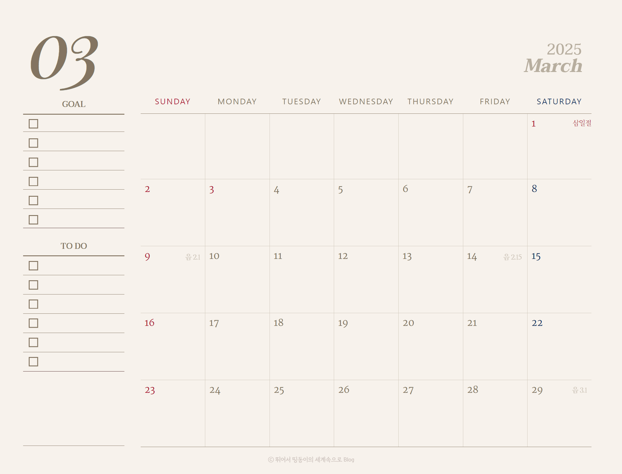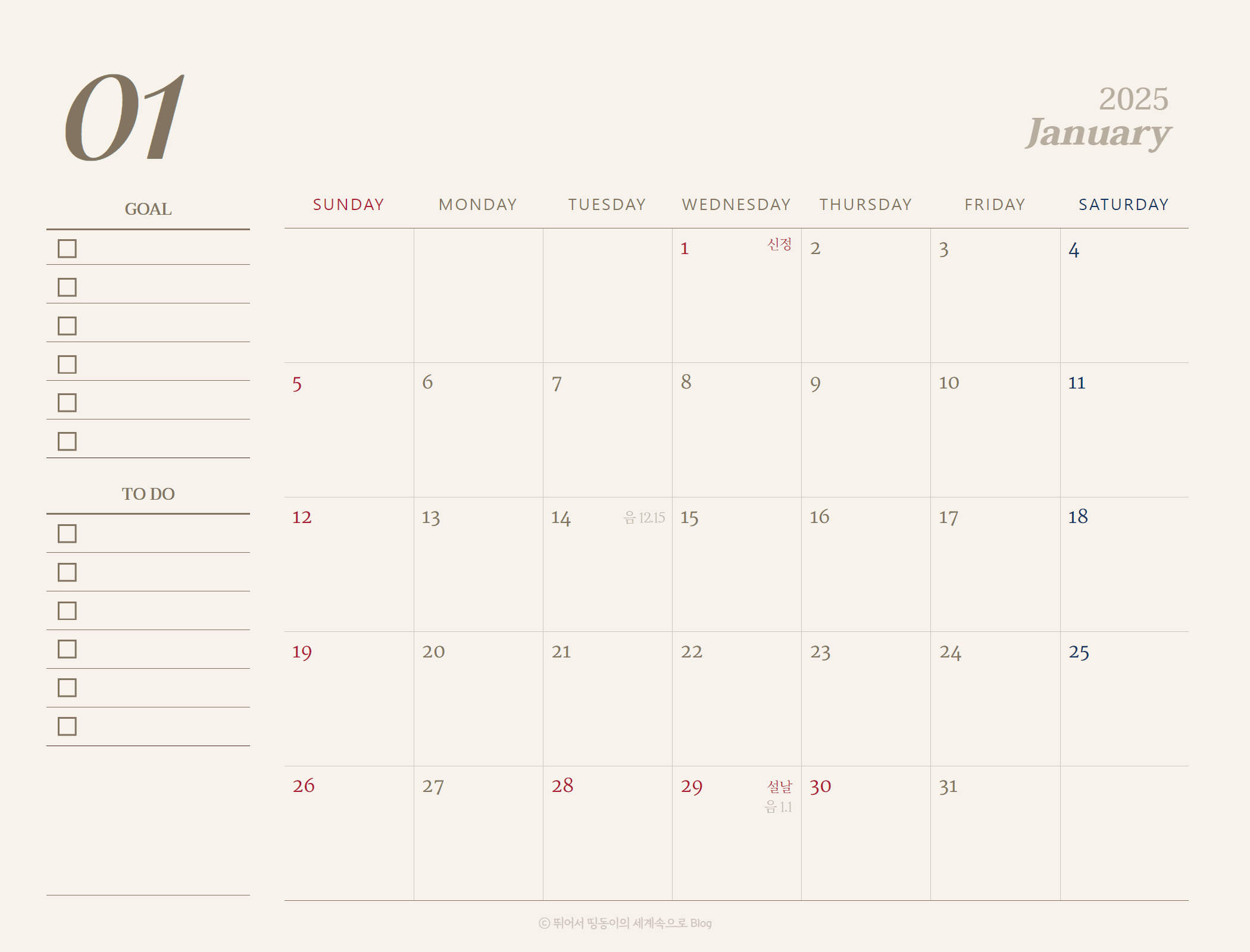 올해도 2025년 달력을 디자인해보았습니다.