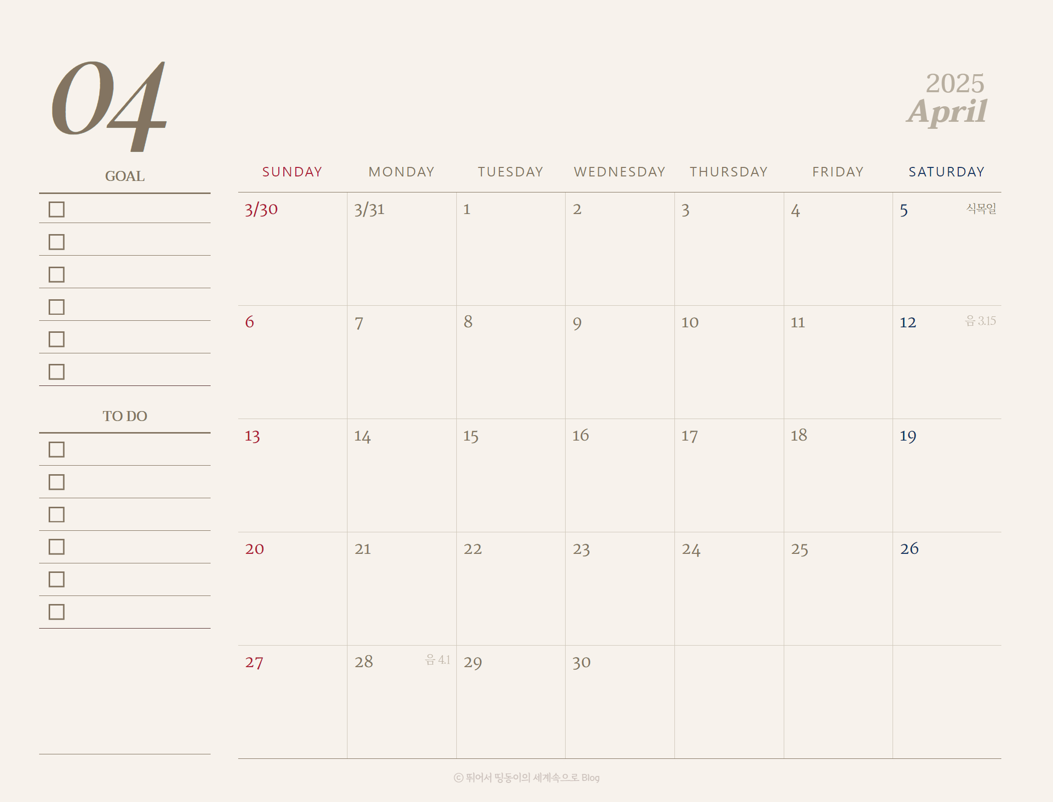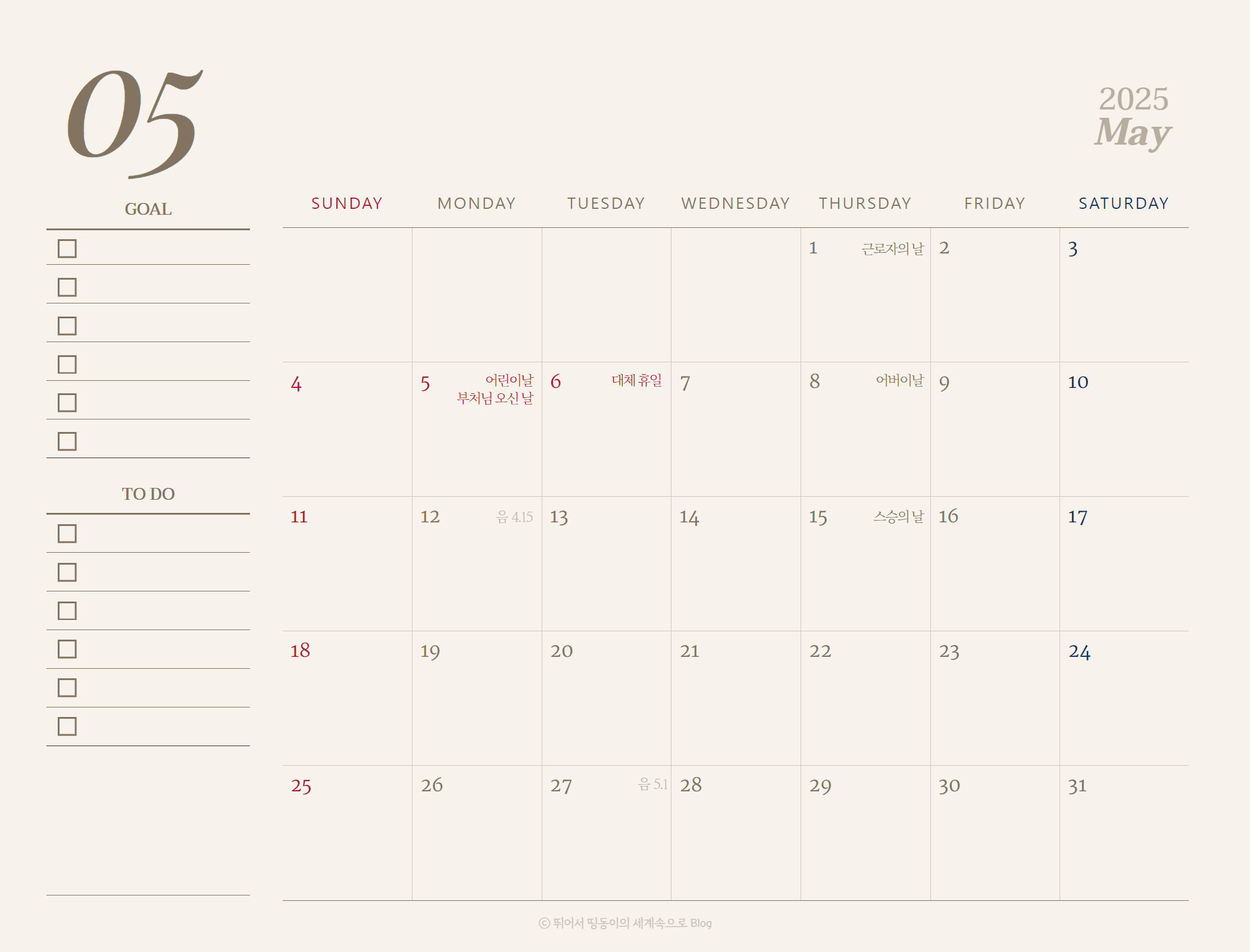 2024년 달력에 이어서 2025년도 달력도 만들어서 찾아왔습니다 😊