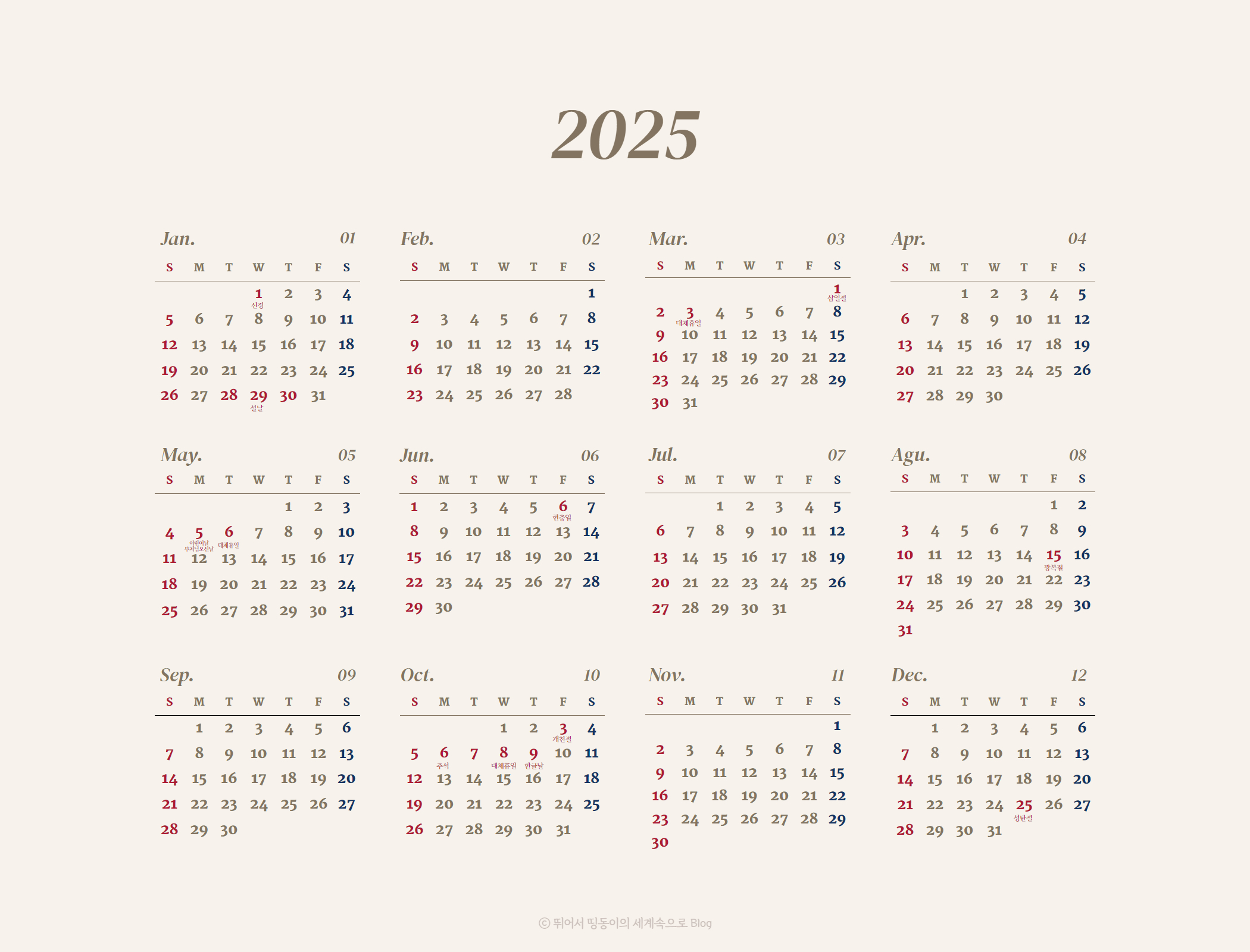 작년에 많은 분들께서 2024년 달력을 유용하게 사용해 주셨다는 피드백을 받아서,