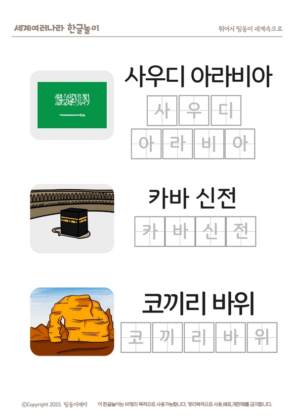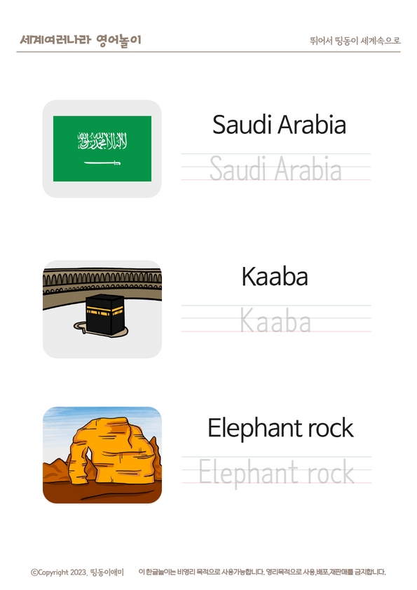 그런 기념으로 이번에는 사우디아라비아의 한글쓰기 영어쓰기를 준비하였습니다.
