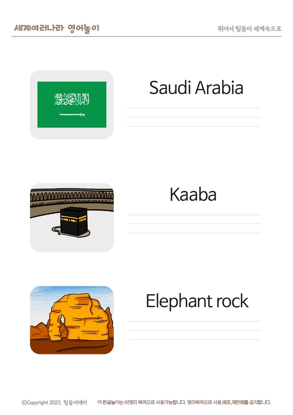 그런 기념으로 이번에는 사우디아라비아의 한글쓰기 영어쓰기를 준비하였습니다.