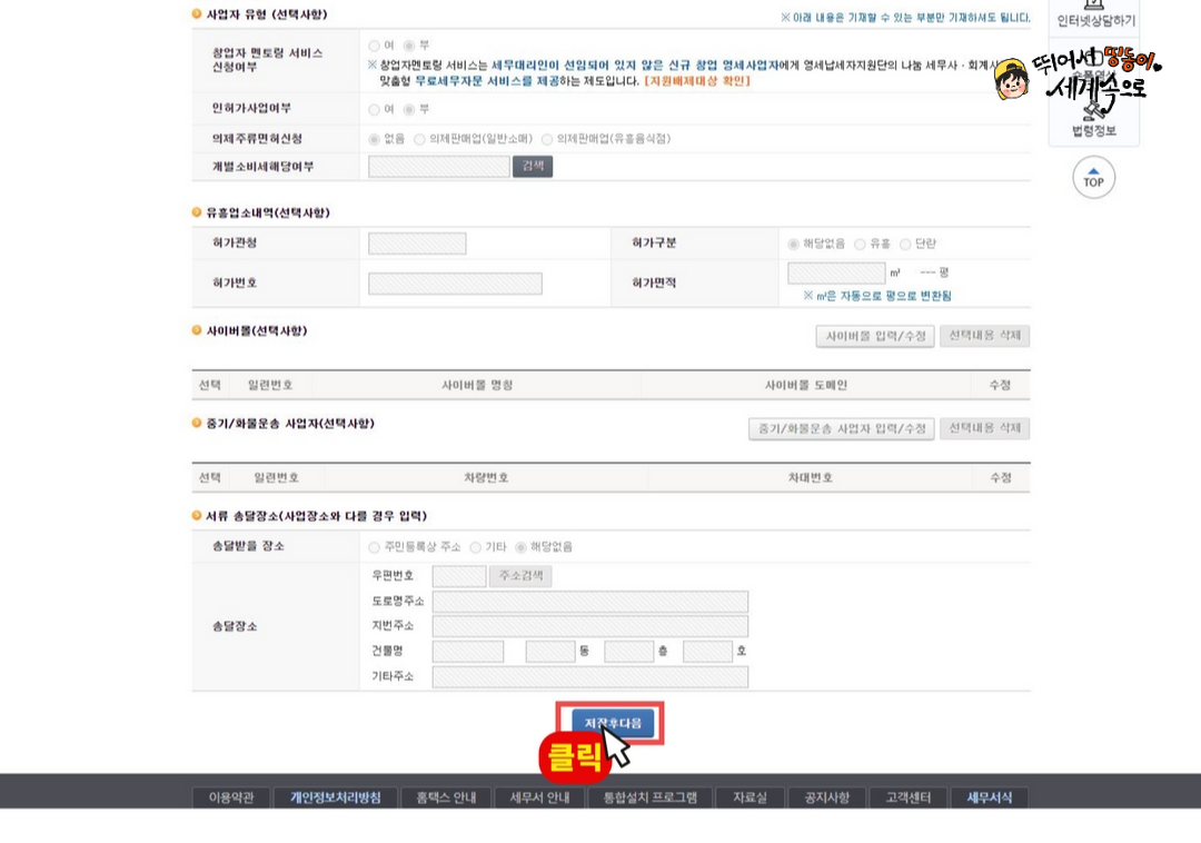 11. 「저장후다음」 클릭해 주세요.