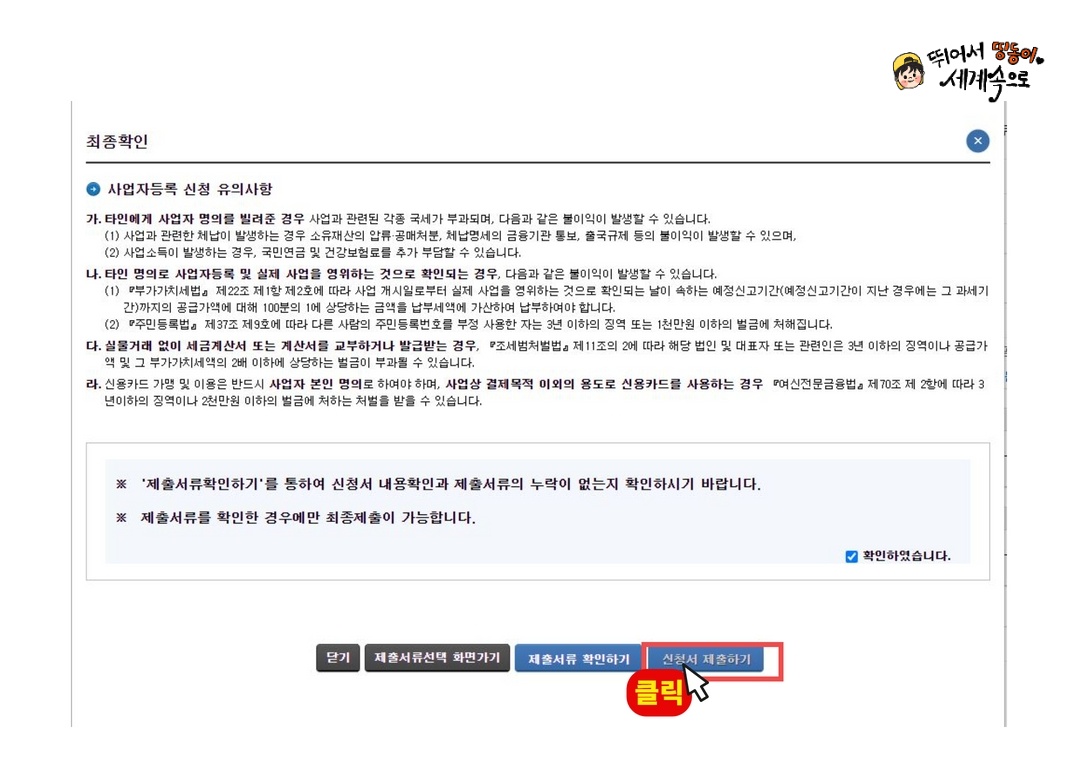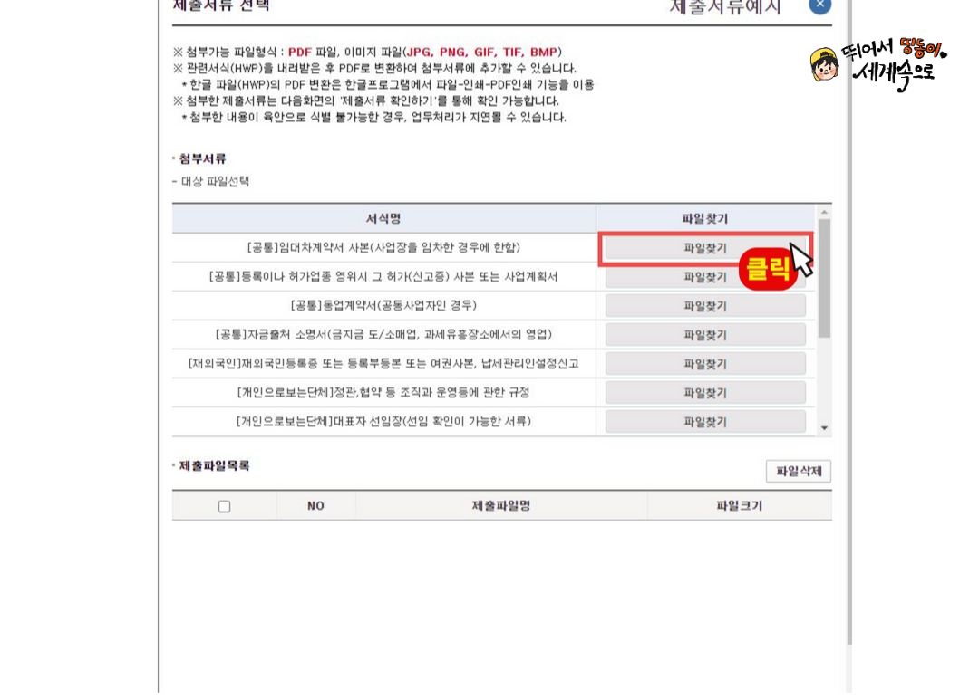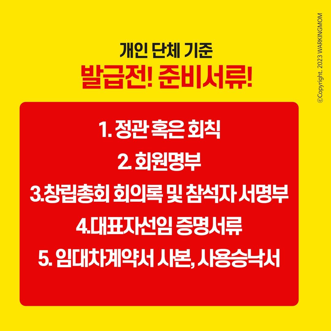 ※ 만약 단체가 법인이라면 사업자등록증(법인)을 클릭해 주세요!