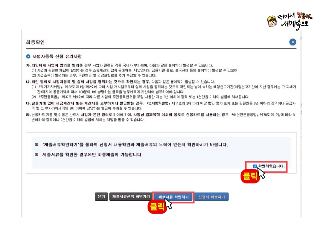 꼭 「제출서류확인하기」 버튼 먼저 눌러주세요.